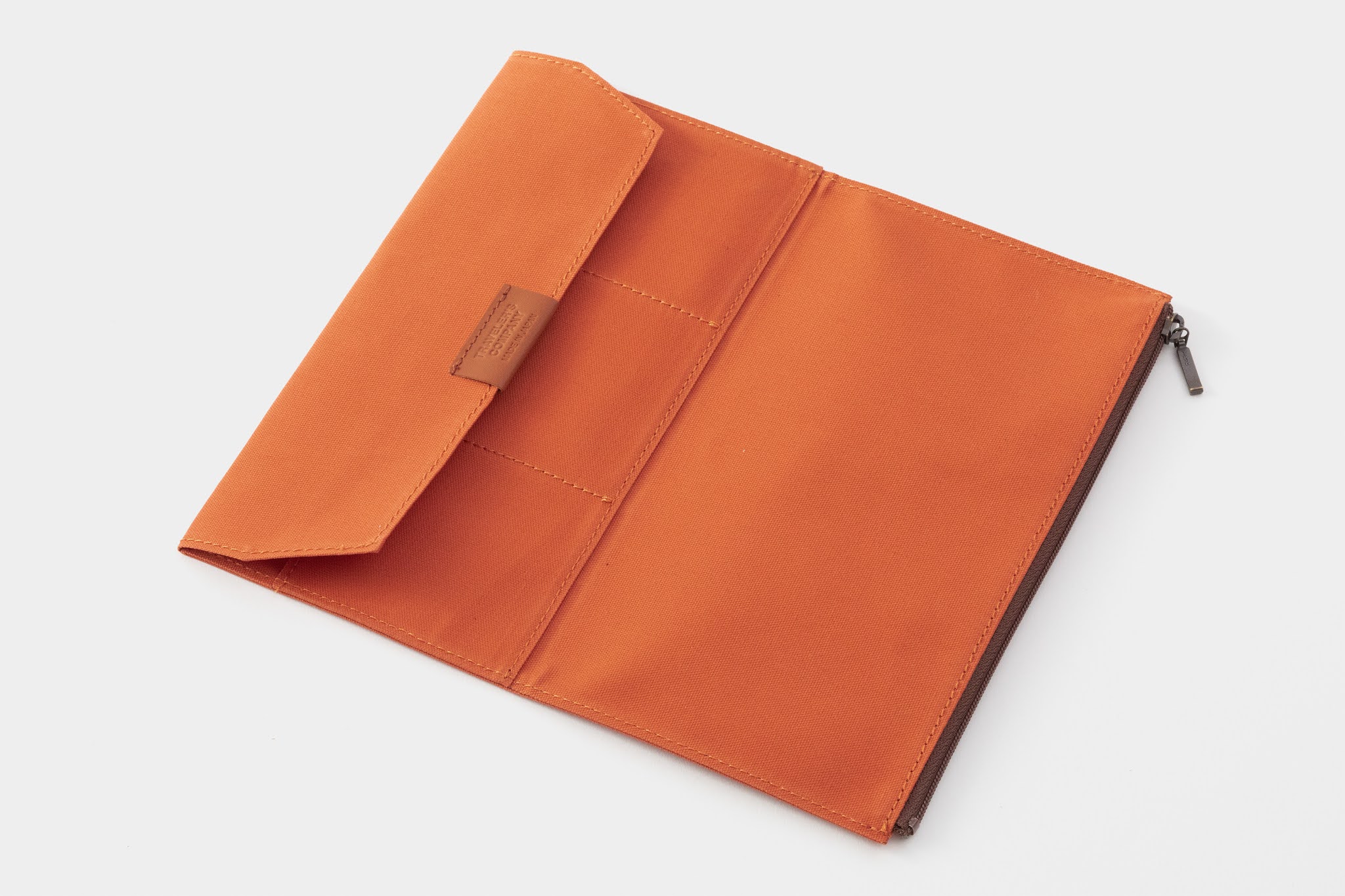 Aprovecha aún más tu cuaderno de viajero: coloca este estuche de algodón con cremallera en tu cuaderno y utilízalo como un lugar seguro para guardar entradas o tarjetas, tus artículos de papelería o como billetera. Este estuche está cuidadosamente elaborado por artesanos de los suburbios de Tokio con tela encerada con parafina de producción local. La textura cambia con el uso, adquiriendo cada vez más carácter. El color puede transferirse si se moja o se frota.
